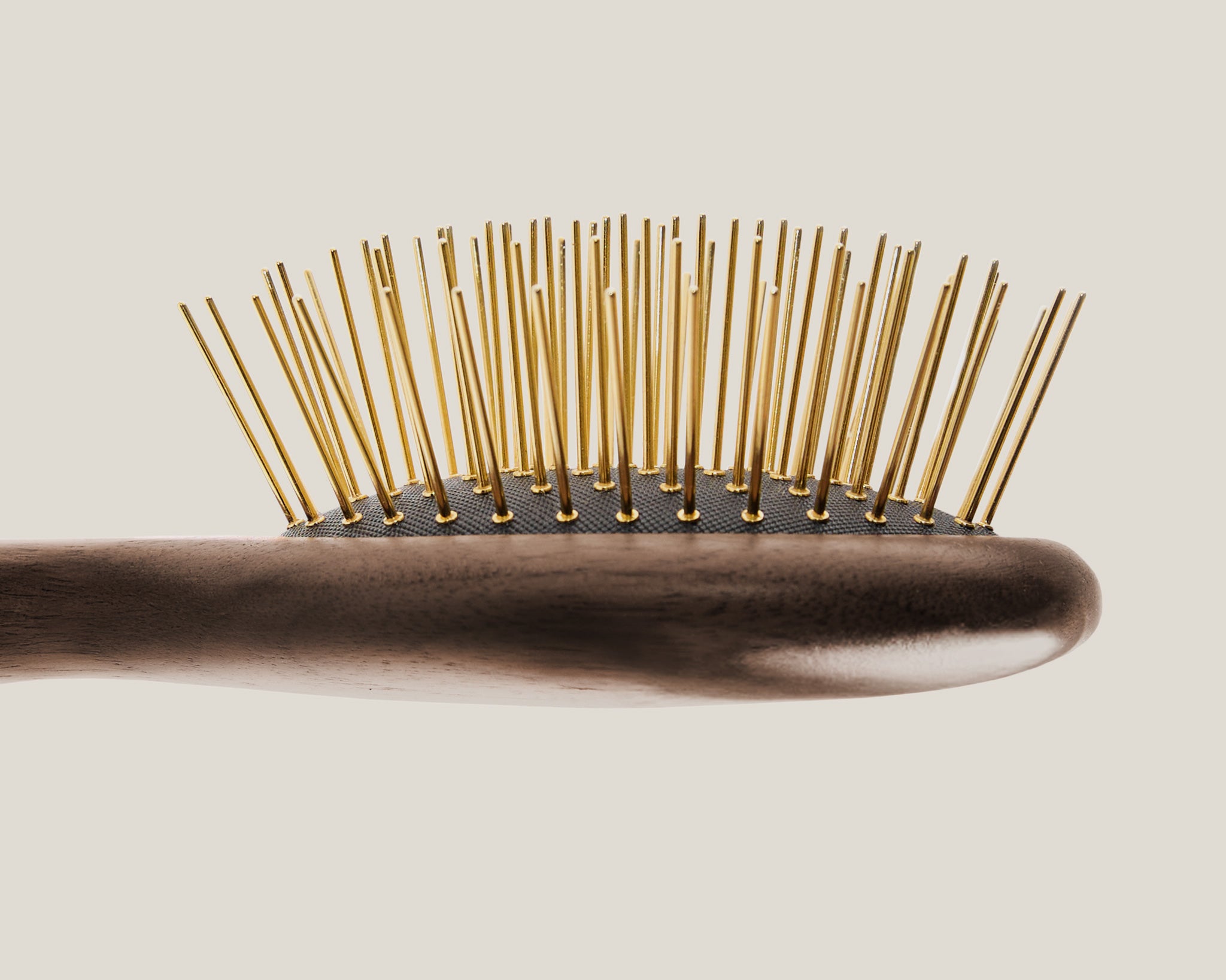 本梳針採用純 24K 鍍金設計,未添加廉價黃金合金,以保持高品質色澤。金色鍍層會隨使用時間逐漸褪去,露出下方鋼質梳針,但不影響梳子的使用舒適感與使用體驗。